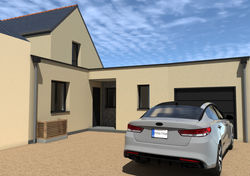 L'entrée permet l'accès au séjour ouvrant sur la cuisine traversante, cela favorise l'éclairement naturel. Le séjour est orienté côté Ouest. Un cellier ouvre sur l’espace cuisine d’un côté et sur le garage d’un autre côté. Un cabinet de toilette se situe près de l’entrée. Une seconde partie de la maison singularise un coin nuit offrant une suite parentale (Chambre-Dressing- Salle d’eau) et une chambre. Le garage à même la maison, permet le stationnement d’une voiture. L’étage est constitué de deux chambres et une salle d’eau entre celles-ci.