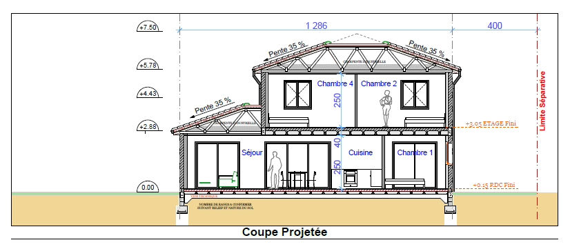 L’implantation de la maison se situe au Nord-Est de la parcelle et sur la limite séparative Est.
